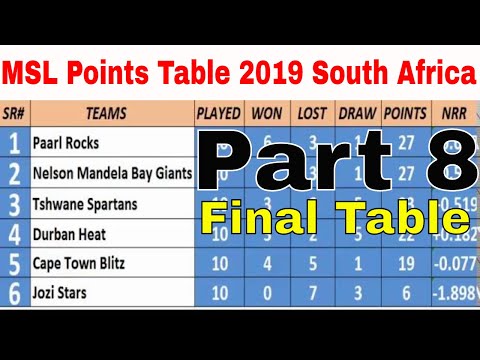 Mzansi Super League Points Table 2019 - (Part 8 04/12/2019)