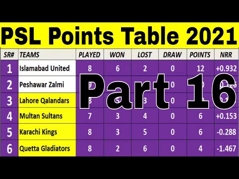 PSL Points Table 2021 - Pakistan Super League (Part 16 ( 15/06/2021)